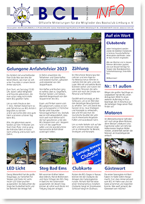 Das Buch " DER RHEIN- Führer für Binnengewässer", Ausgabe 2022, 9. Auflage, aus dem Delius Klasing-Verlag, Autor Manfred Fenzel, enthält falsche Angaben auf Seite 203 zum BOOTSCLUB LIMBURG, Lahn-Kilometer 71,1. Im Buch wird eine Wassertiefe im Hafen von 1,30 bis 1,10 m angegeben. Richtig ist, dass an den Aussenstegen, bei Normalwasserstand (Kalkofen 1,80 m) mind. 1,60 m an den Anlegestegen gewährleistet sind. Eine Sliprampe gibt es nicht, genauso wenig wie einen Hafenkran mit 5,5 to. Die aktuellen Telefonnummern siehe unter schneller Kontakt.